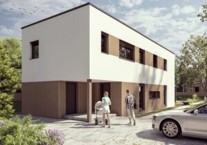 Výsledný dizajn domu je vyhotovený podľa želaní našich klientov. V prípade záujmu vám dizajn radi navrhnú naši architekti. Dom potom vyhotovíme v želanom dizajne – na výber máte farby fasády, okien, dverí, strechy a detailov, kamenné a drevené obklady, atď.