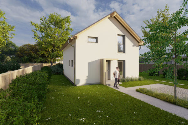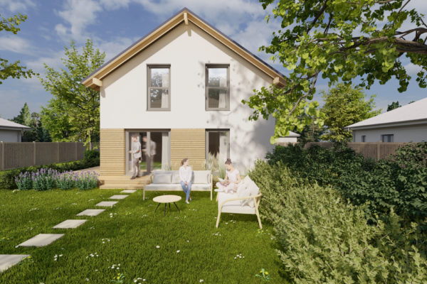 Dom je svojim dizajnom a klasickým tvarom vhodný do každej zástavby. Je vhodný aj na menší pozemok, pretože jeho zastavaná plocha je 77 m2 a rozmery sú 7,7 x 9,9m. Sklon strechy sme navrhli tak, aby vyhovoval najčastejším požiadavkám územných plánov obcí Slovenska. Výhodou podkrovia je možnosť nechať ho otvorené až po strechu – v našej, dobre zaizolovanej drevostavbe nemusíte riešiť „únik tepla hore“ – ktoré môžete využiť na umiestnenie zvýšených postelí, alebo herného útočiska pre deti.