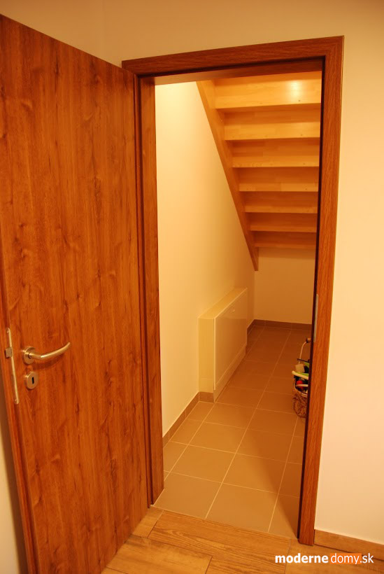 Vieme, že úložný priestor je v rodinnom dome veľmi dôležitý. Preto sa snažíme využiť každý meter podlahovej plochy – dokonca aj ten pod schodmi. Tu pri kuchyni bol naplánovaný ako komora a menší sklad.