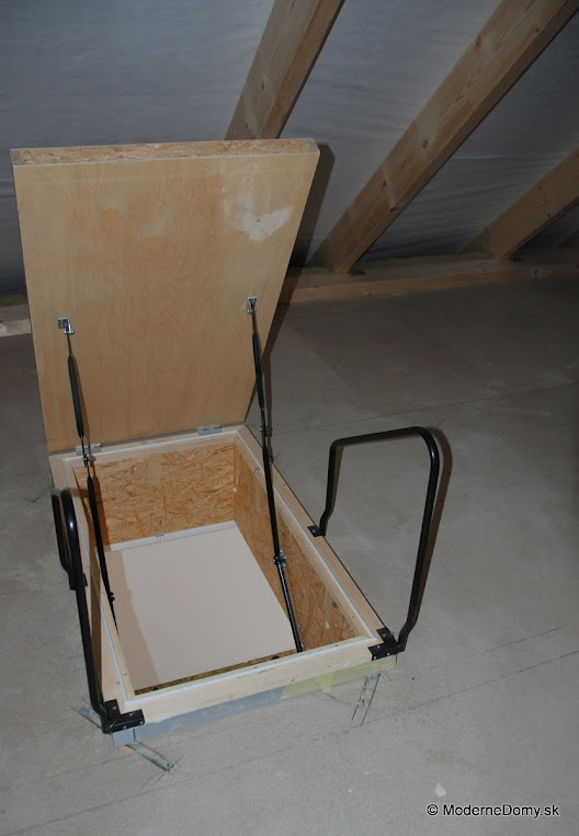 Strešný výlez, ktorý slúži pre využitie krovu – napr. na uskladnenie sezónnych potrieb. Strecha nad bungalovom je celá pochôzna a poskytuje naozaj obrovské množstvo priestoru.